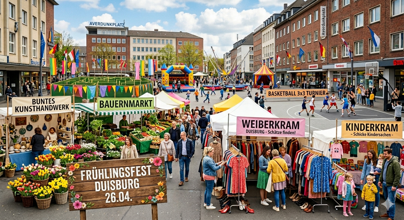 Duisburg blüht auf. Am Sonntag, den 26. April, verwandelt sich die Innenstadt in eine riesige Erlebnismeile. Beim großen Frühlingsfest locken gleich mehrere Highlights parallel: Während auf dem Bauernmarkt frische Waren und Kunsthandwerk warten, kommen Fashion-Fans beim sogenannten „Weiberkram“-Second-Hand-Markt auf ihre Kosten. Für die Kleinsten gibt es beim „Kinderkram“ neue Lieblingsstücke. Der Averdunkplatz bietet einem die Chance sich auszupowern: Hier verwandelt sich der Platz in einen Freizeitpark mit Hüpfburgen, Bungee-Trampolin und einem riesigen Irrgarten. Wer es sportlich mag, kann beim 3-gegen-3-Basketballturnier […]