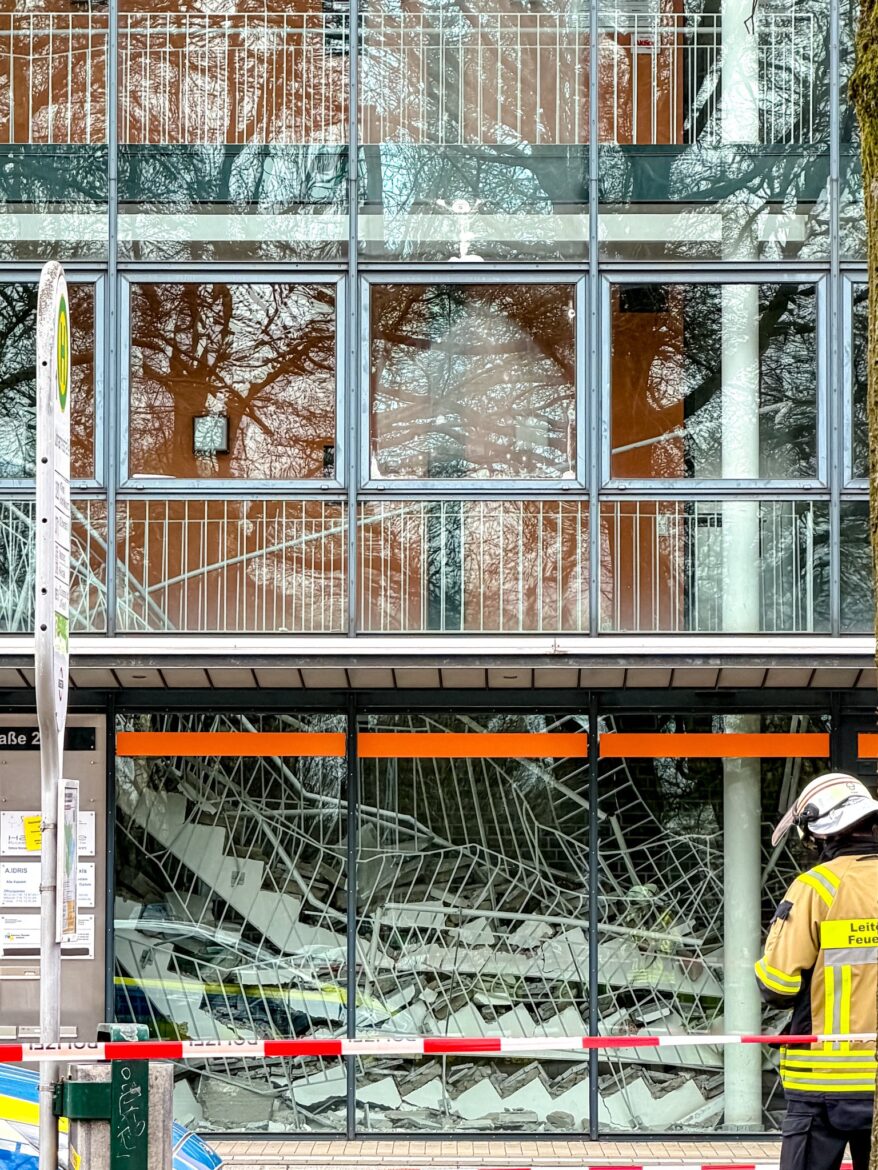 In einem Geschäftshaus in Witten (Ennepe-Ruhr-Kreis) ist am Mittwochmorgen (11.03) ein Treppenhaus eingestürzt. Gegen 10 Uhr wurde die Polizei alarmiert. Das Treppenhaus brach über drei Etagen zusammen. In dem Gebäude befinden sich unter anderem eine Anwaltskanzlei, eine Physiotherapiepraxis und eine Zahnarztpraxis. Feuerwehrleute retteten Mitarbeiter und Kunden aus den oberen Stockwerken. Dafür waren zwei Drehleitern im Einsatz. Nach ersten Erkenntnissen wurde niemand verletzt. Ein Statiker prüft nun, warum das Treppenhaus einstürzte.
